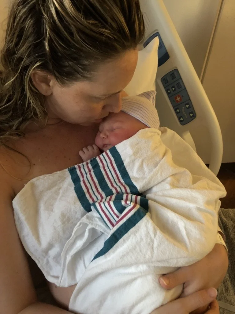 We transferred across the street to Vanderbilt, a midwife in our car with us. I got into the wheelchair fully in the pushing phase of labor, with strangers seeing me in that state and congratulating me. It was a nightmare. I felt on display during my most vulnerable moment. Additionally, Vanderbilt has brick pavers in their lobby and when you have a 9-pound baby’s whole body so low inside yours, being wheeled around those bumpy bricks is agony. I won’t forget that. But I got into the room and something had been watching over me knowing exactly the people I needed to get me to the finish line. I had my doula, Heather, who was also our birth educator; an actual angel. I had a nurse there who lives in my heart as a Dolly Parton-caliber celebrity. She held me, she advocated for me to the monotone anesthesiologist trying to talk to me while I was in my most fragile state, desperate to have no man around but my husband. I learned later that she sent him off on my behalf. And then we got Ms. Mavis, the head of the Vanderbilt Nurse Midwives. She’s probably my mom’s age. She checked me and said, "Your baby’s coming!" She gave me such confidence, she believed in me, she was tough, she was EXACTLY the personality I needed to get through it. I pushed two more hours there, but it felt like 30 minutes.
